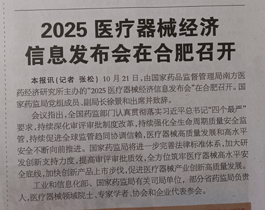 【2025.10.27,《医药经济报》头版】 2025医疗器械经济信息发布会在合肥召开
